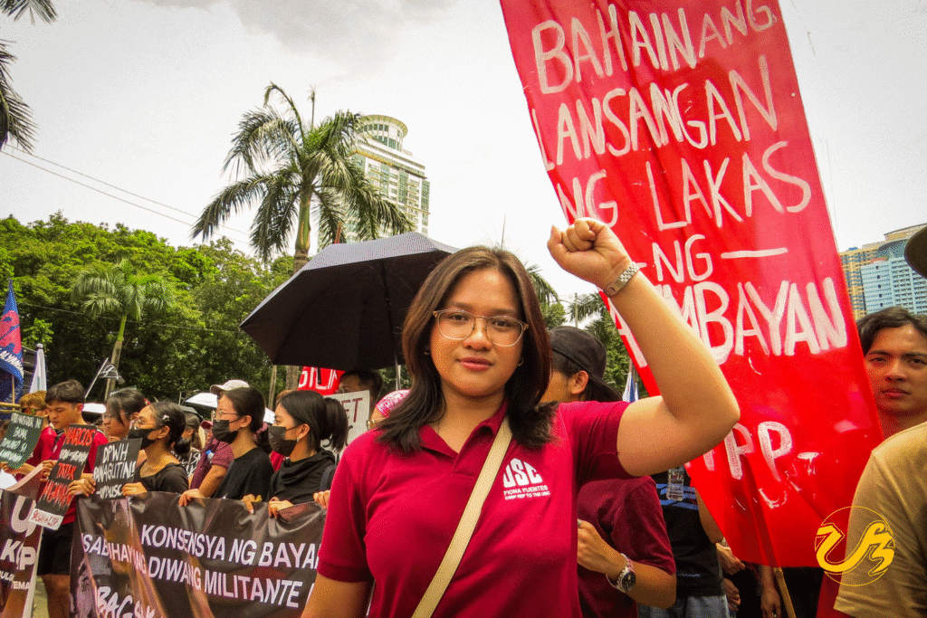 “Andito tayo para ipahayag ang galit natin ngayon at para ipakita sa estado ang laksa-laksang lakas ng masang estudyante—na ito yung taumbayan at malaki na ang hinanakit ng taumbayan sa korapsyon over the years”
